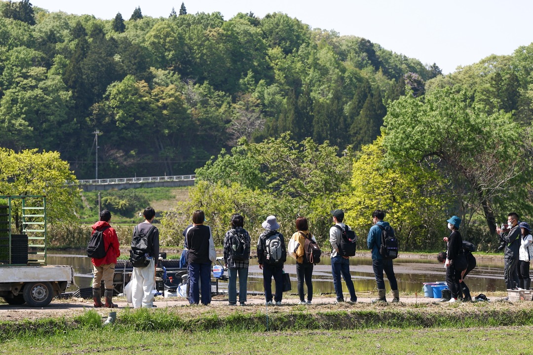 若者たちを前に「自分たちで考えたお酒ができるまでに、どんな工程を踏んでいるのか。そのひとつを通じて、彼らにも何かを感じてもらえたら」と、竹村さんは丁寧に田植えの工程を説明していました。