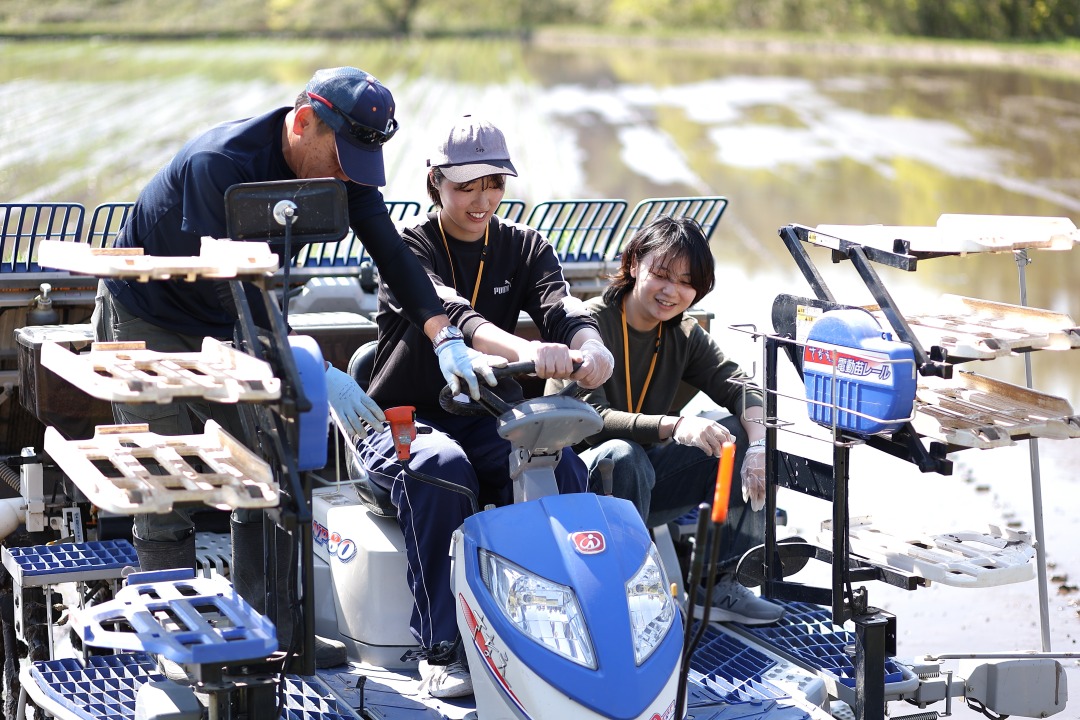 今年の田植えは、いつもと少し違った風景。田んぼには、竹村さんのご家族や地元の方々に交じって、若い学生たちの姿がありました。金沢大学から有志の学生が訪れ、田植え作業を手伝ってくれたのです。