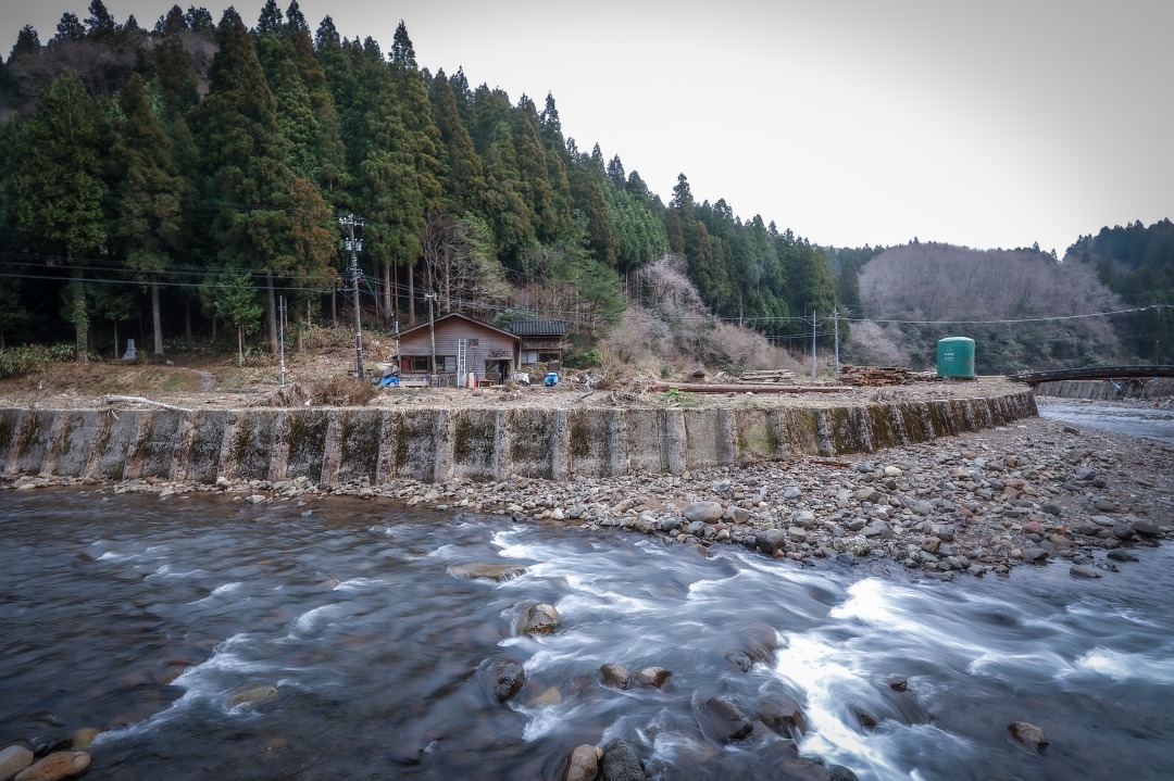 『能登仁行和紙』の工房は、のどかな雰囲気が漂う仁行(にぎょう)地区にあります。工房を取り囲むように澄んだ川が流れ、その瀬音が豊かなBGMになる静かな場所です。